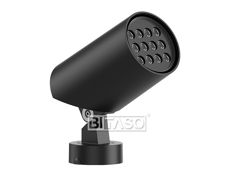 AGLAIA 40W-48W LED landscape lighting with anti-glare visor, IP66 waterproof aluminum outdoor garden spotlights, 110-240VAC/ 24VDC, support monocolor, RGB, RGBW, Triac/ 0-10V/ DALI/ DMX512 dimmable, 5°/8°/10°/25°/40°/60°...multiple beam angles available base mounted architectural projector lights.
